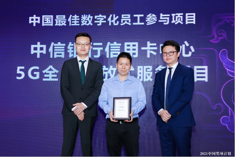 2021年7月22日,中国未来金融峰会在北京举行。中信银行信用卡"5G全IP开放式服务项目"荣获《亚洲银行家》2021年度"中国最佳数字化员工参与项目"大奖。
