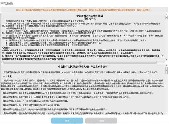 5. 若您的风险承受能力高于或等于产品的风险等级,直接进入购买协议页面,请您仔细阅读产品说明及购买协议,如下图: