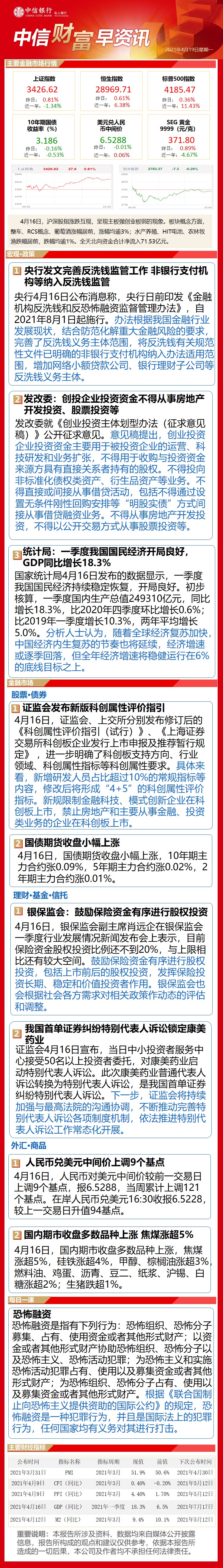 中信财富早资讯4月19日