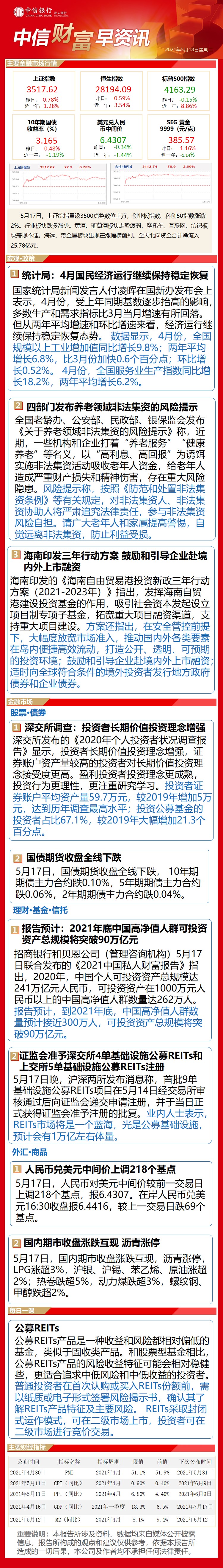 中信财富早资讯5月18日