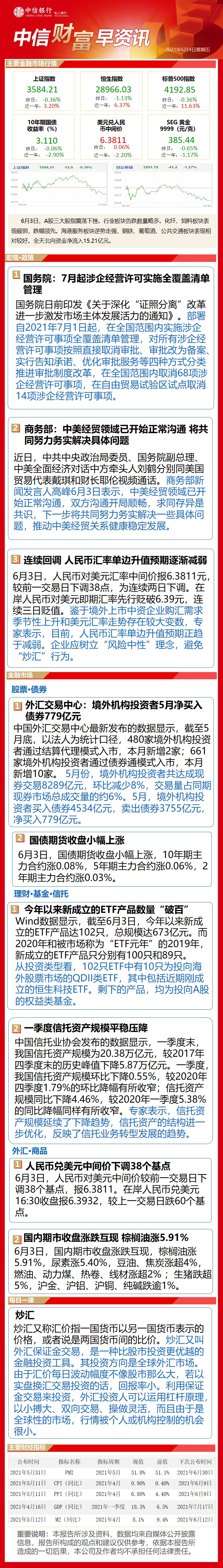 中信财富早资讯6月4日
